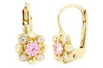 | Dětské náušnice zlaté Kruhy bílé a růžové zirkony