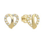 | Náušnice zlaté Srdíčka polovina osázená bílými zirkony