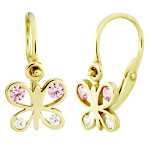 | Dětské náušnice zlaté Motýl růžové a bílé zirkony