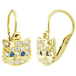 | Náušnice zlaté Kočky oči modré zirkony