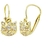 | Náušnice zlaté Kočky oči růžové zirkony