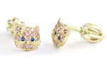 | Náušnice zlaté Kočky oči modré zirkony a zirkony růžové